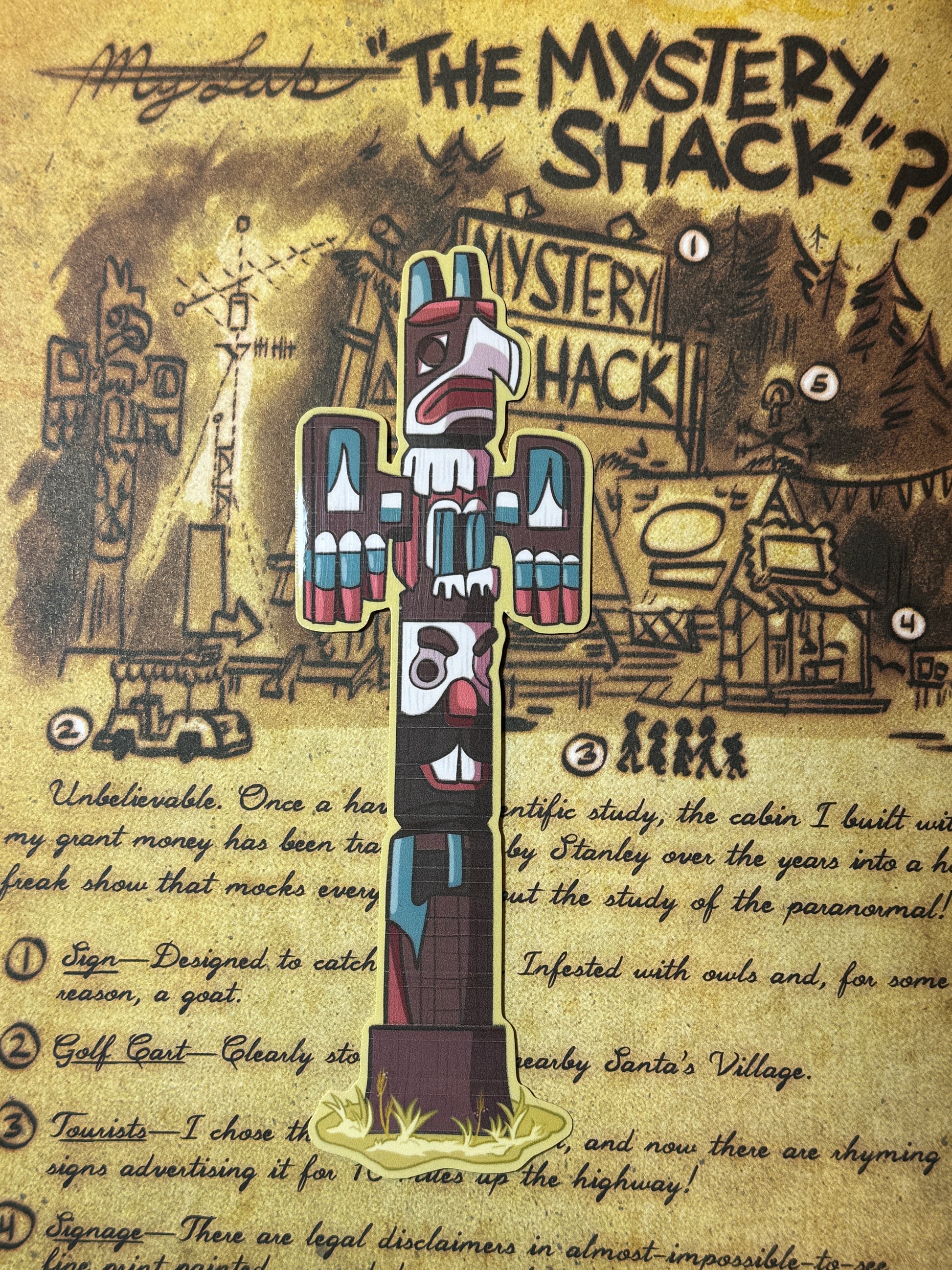 A glossy water resistant sticker based on the totem pole that stands outside of the Mystery Shack! What is it? Where did it come from?